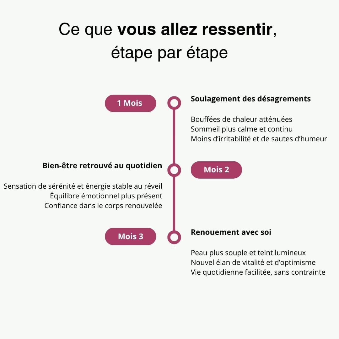 Résultat : des bouffées de chaleur apaisées, un sommeil plus serein et une vitalité retrouvée — sans comprimé à avaler, ni effet secondaire, juste un geste simple et discret qui s’intègre naturellement à votre quotidien.